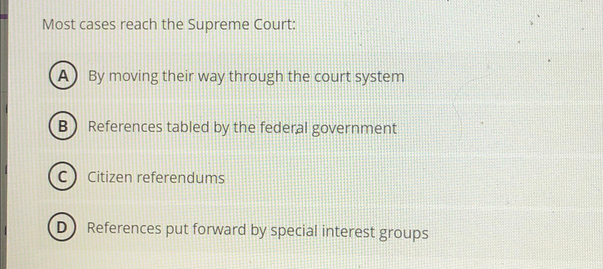 Solved Most cases reach the Supreme Court:By moving their Chegg com