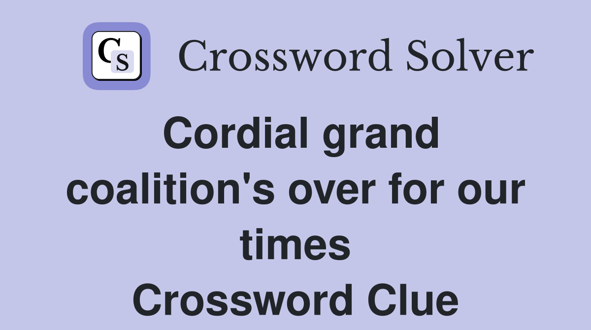 Cordial grand coalition #39 s over for our times Crossword Clue Answers