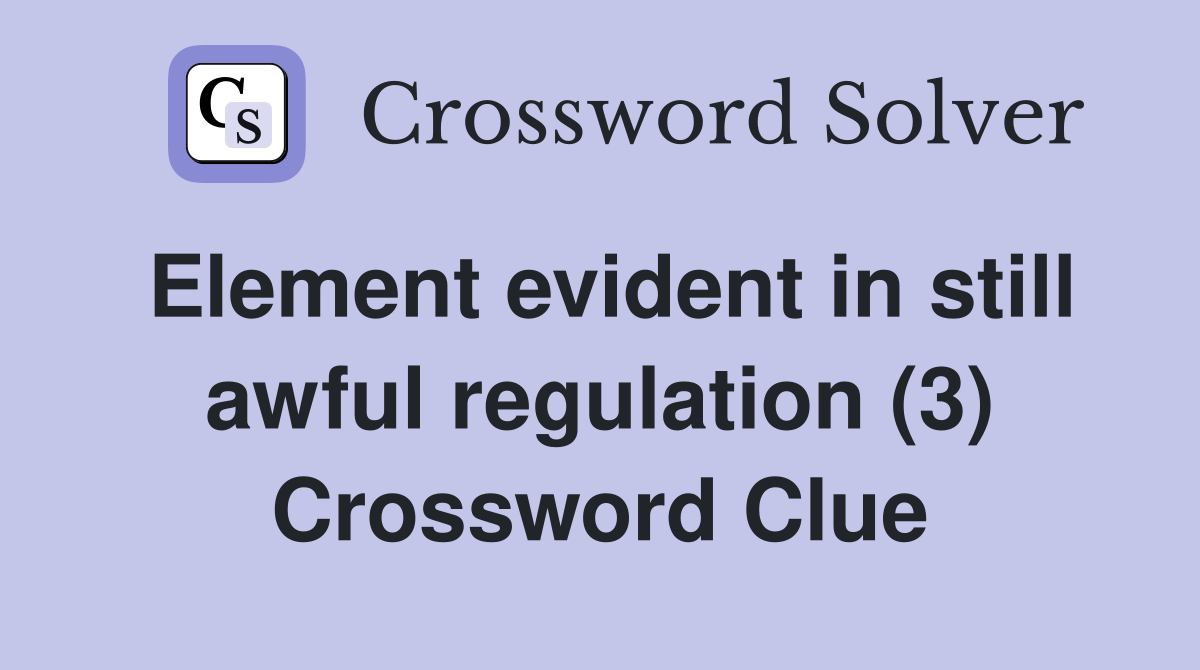 Element evident in still awful regulation (3) Crossword Clue Answers