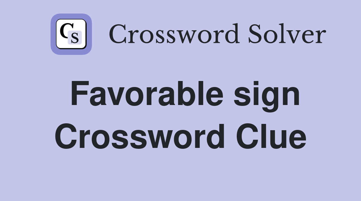 Favorable sign Crossword Clue: 1 Answer with 8 Letters
