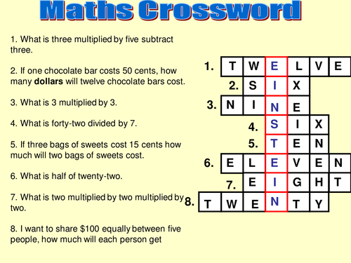 math crossword Teaching Resources