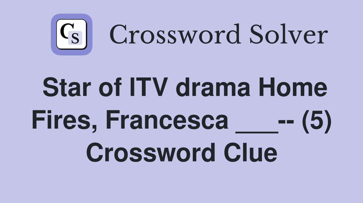 Star of lTV drama Home Fires Francesca (5) Crossword Clue