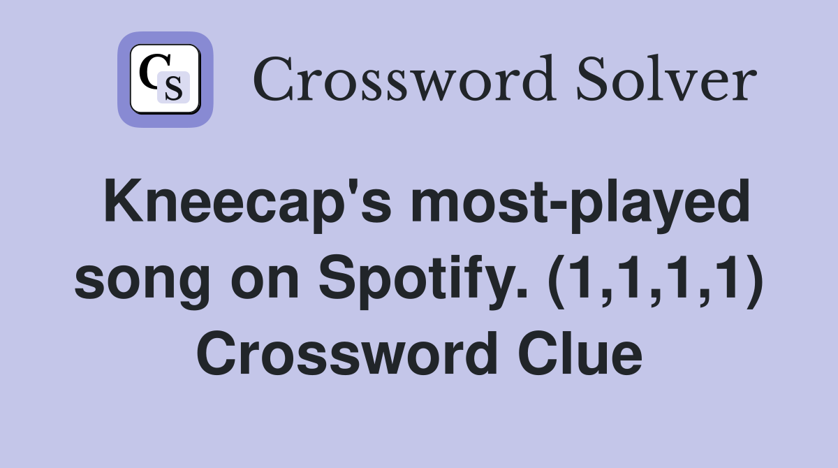 Kneecap #39 s most played song on Spotify (1 1 1 1) Crossword Clue
