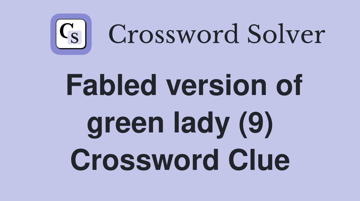 Fabled version of green lady (9) Crossword Clue Answers Crossword