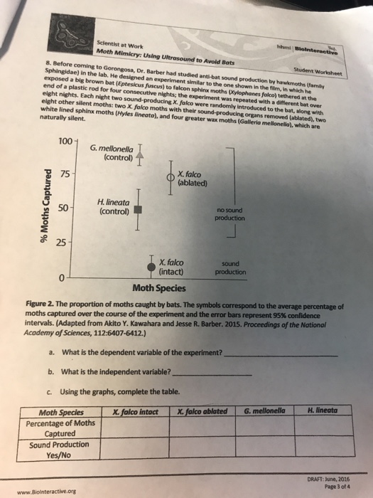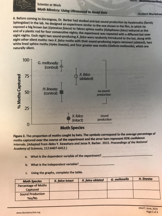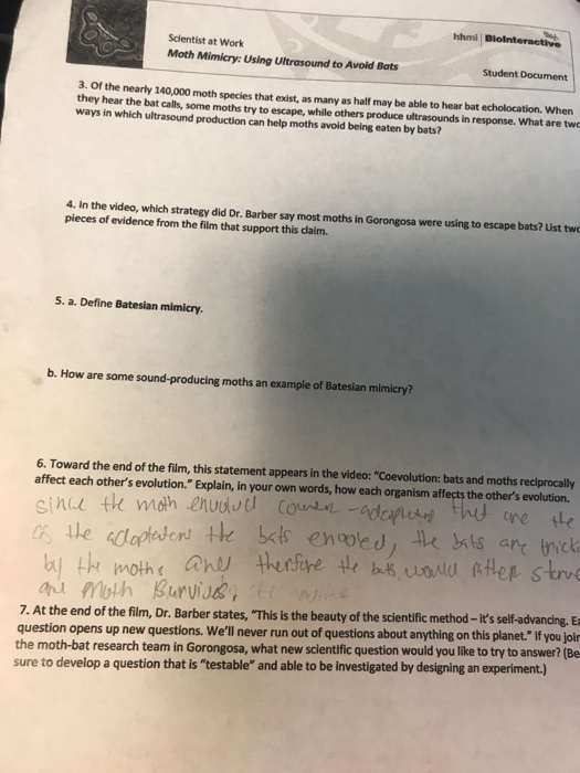 Solved Sclentist at Work Moth Mimicry: Using Ultrasound to Chegg com