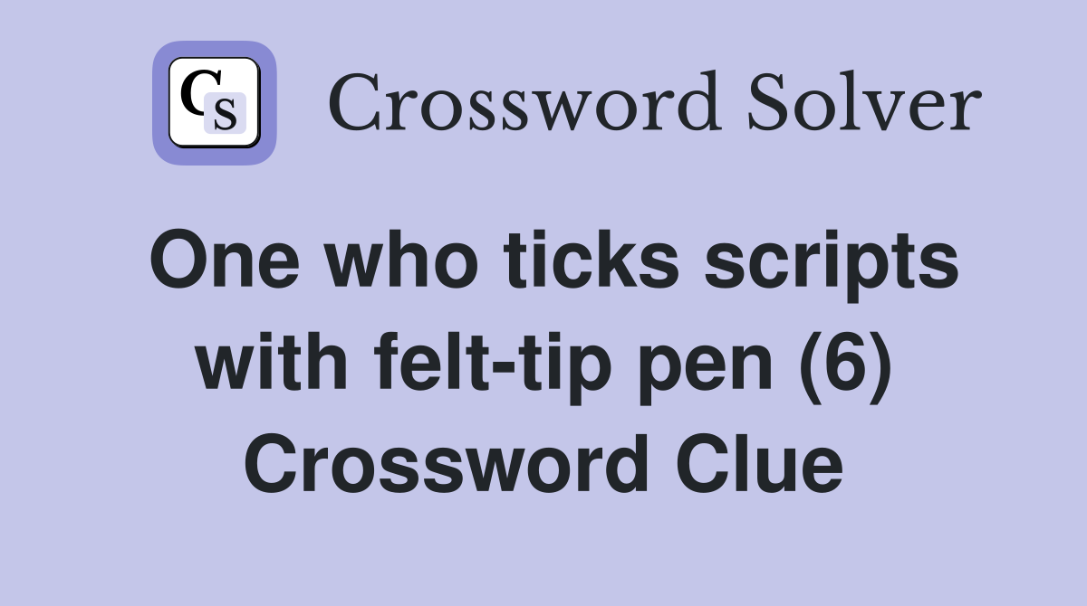 One who ticks scripts with felt tip pen (6) Crossword Clue Answers