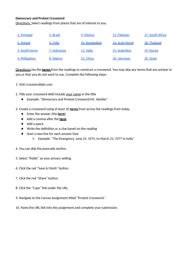 Fight for Democracy Around the World Mathea Hailemariam Crossword Labs
