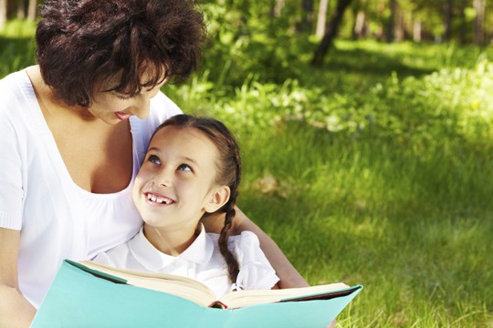 Nature Mother and Child Reading Book in Park Story Time in Park or