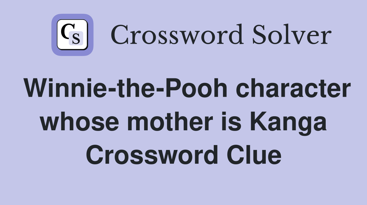 Winnie the Pooh character whose mother is Kanga Crossword Clue