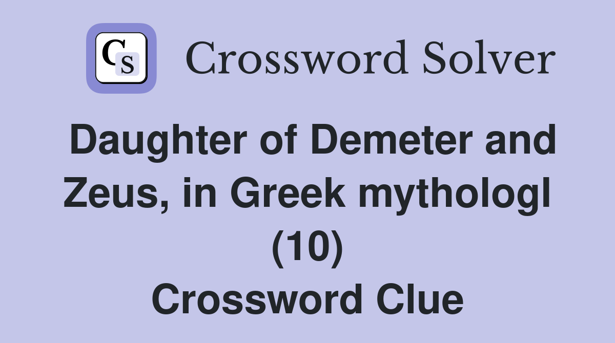 Daughter of Demeter and Zeus in Greek mythologl (10) Crossword Clue