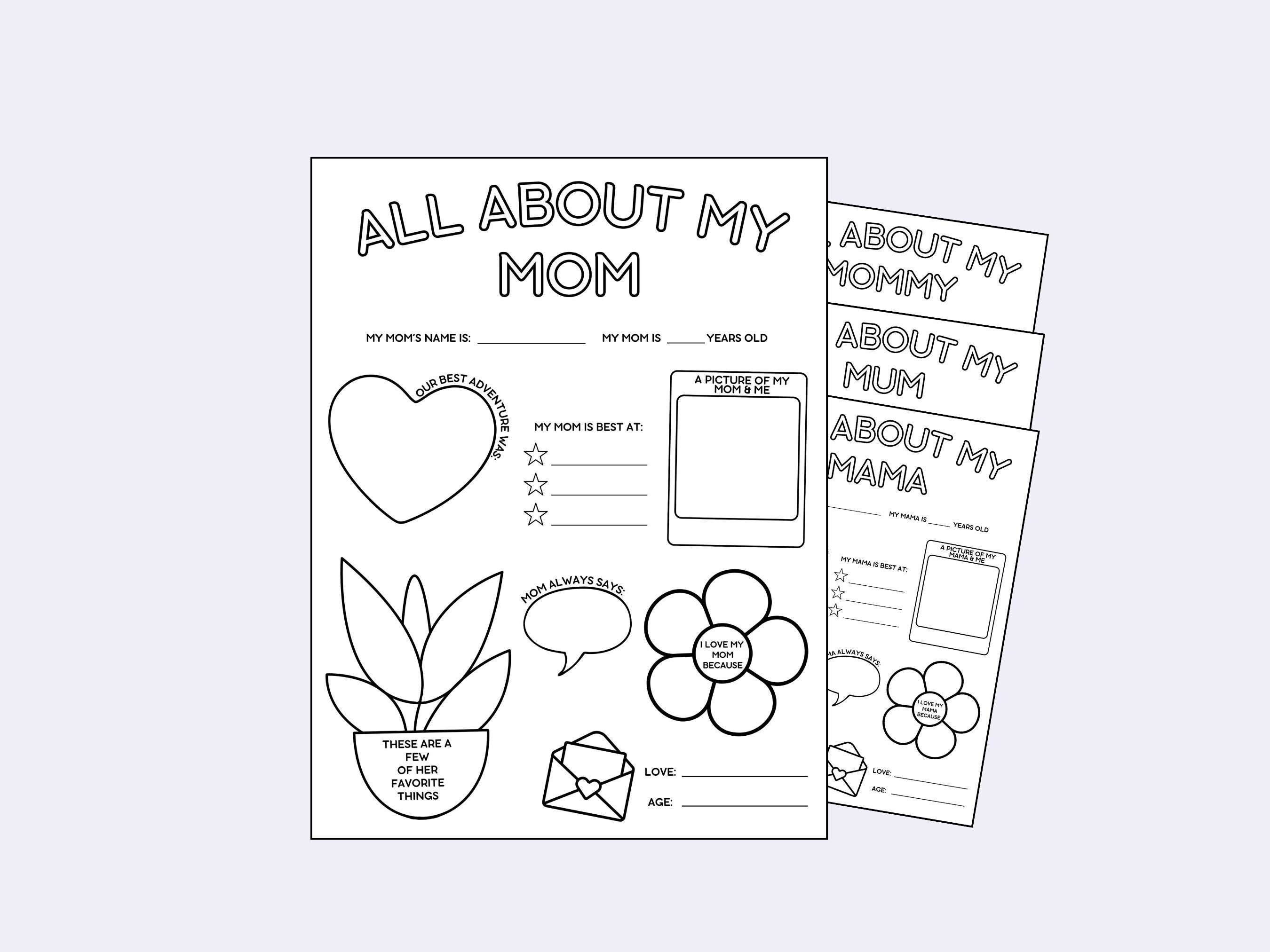 Mother s Day Printable: All About My Mom Activity Page (PDF) Etsy
