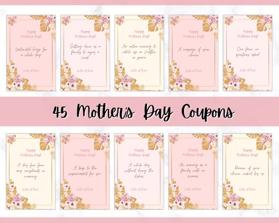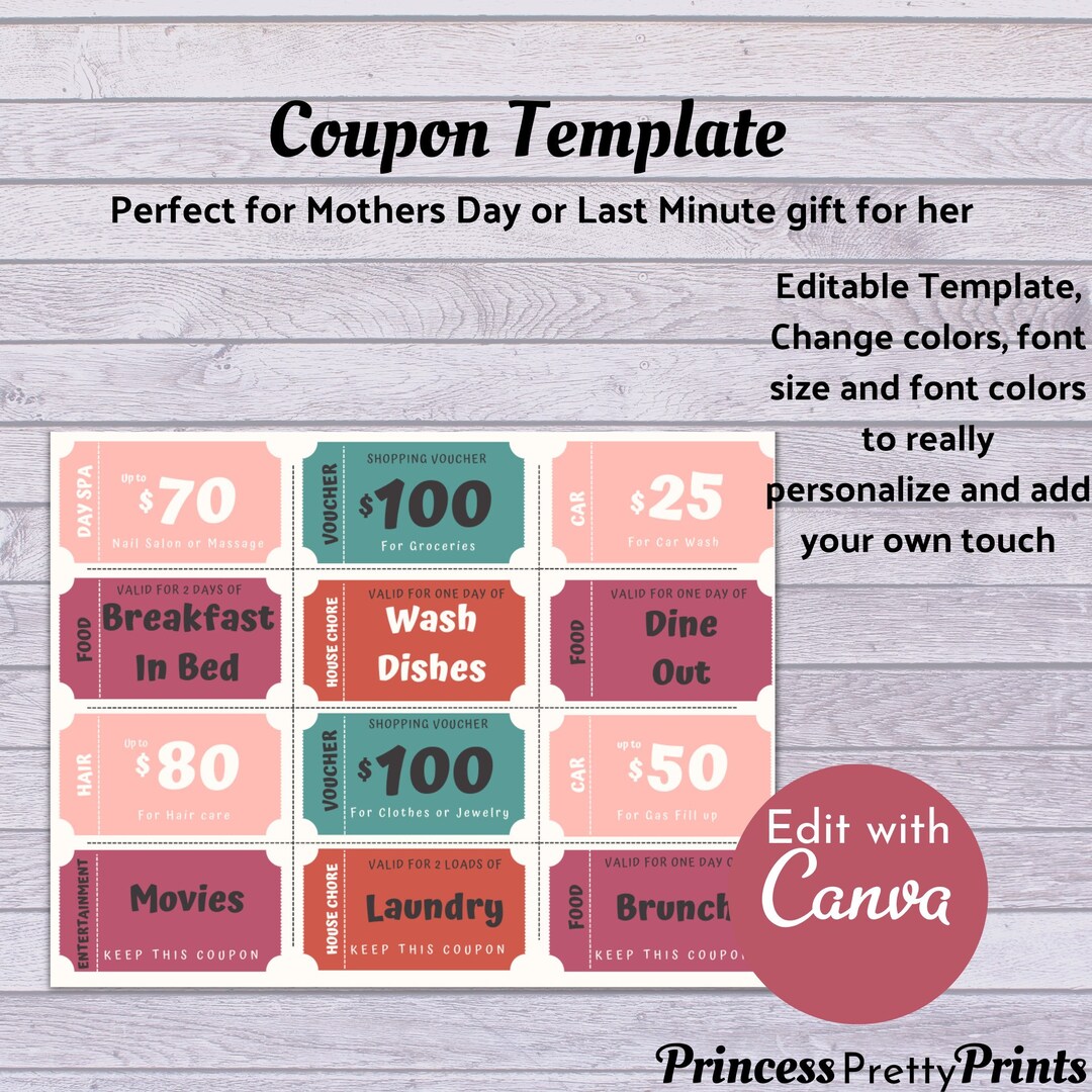 Printable Mothers Day Coupon Template Voucher Template Etsy