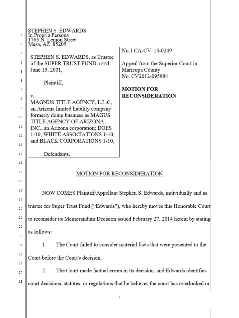 Motion For Reconsideration PDF Federal Rules Of Civil Procedure