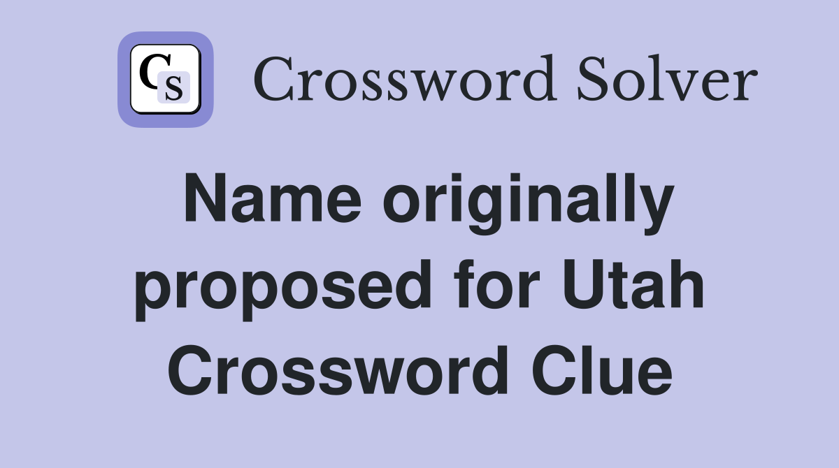 Name originally proposed for Utah Crossword Clue Answers Crossword