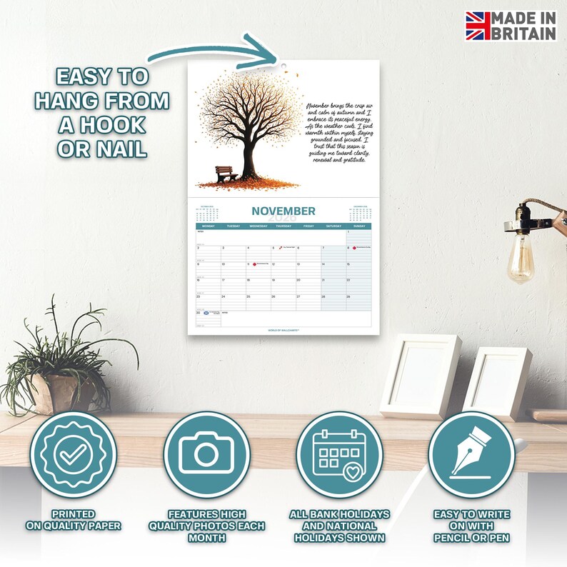 Inspirational 2026 Calendar UK Positive Affirmation Mindfulness Wall