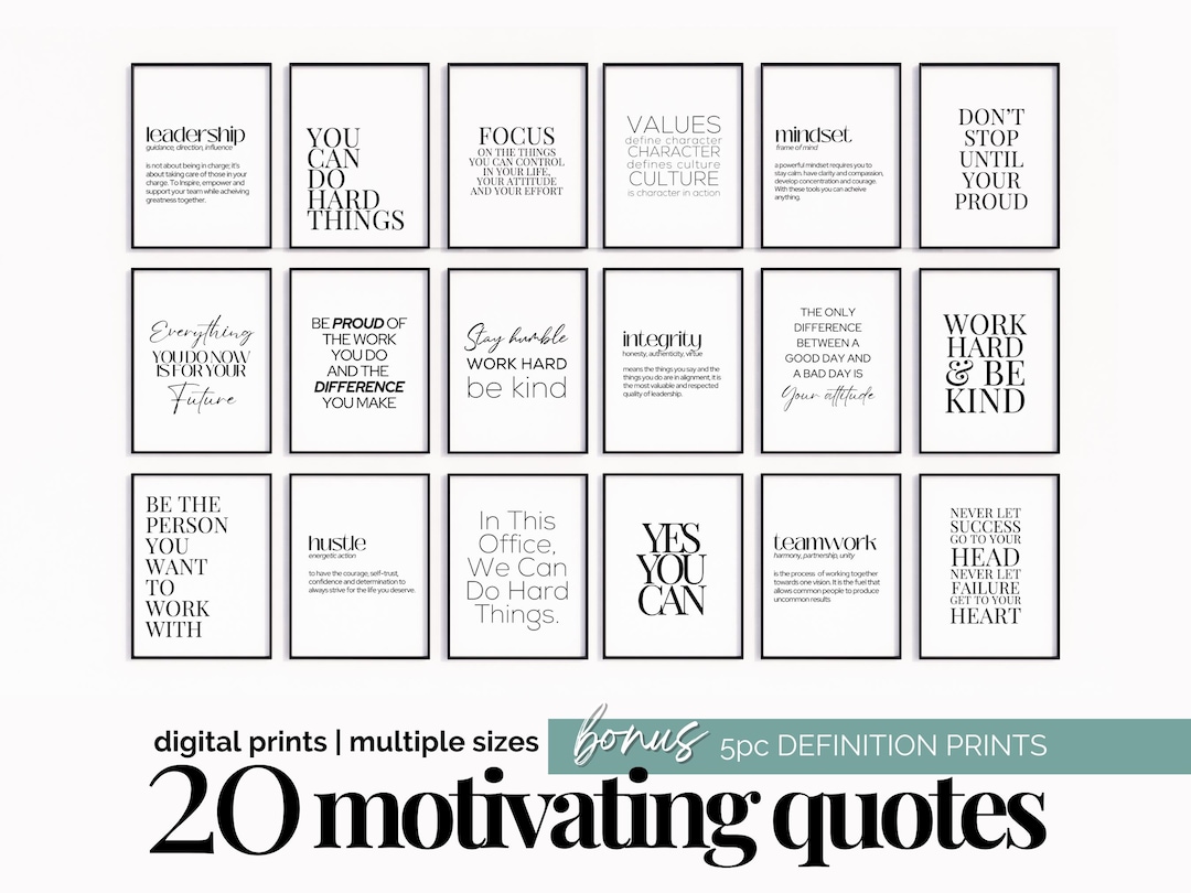Motivational Office Quote Bundle Printable Office Decor Black and
