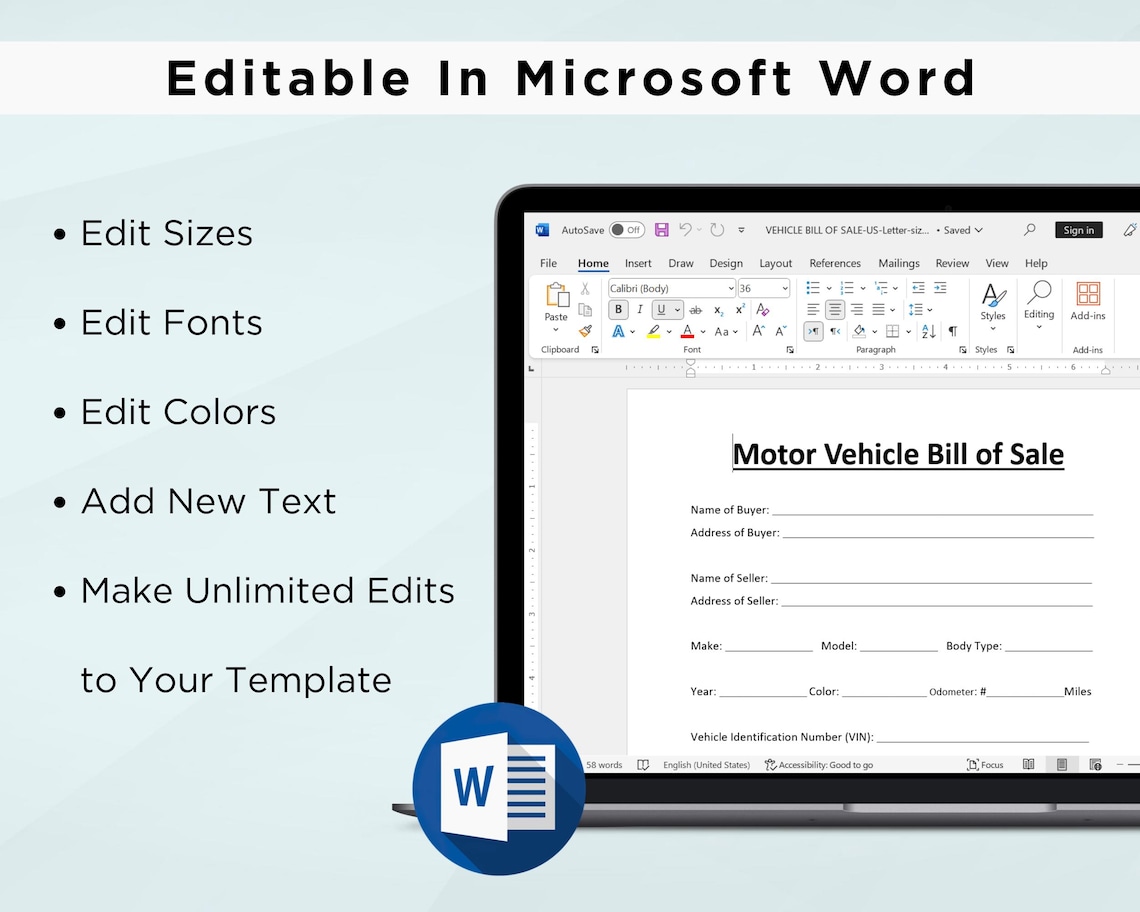 Motor Vehicle Bill of Sale Printable PDF File Etsy