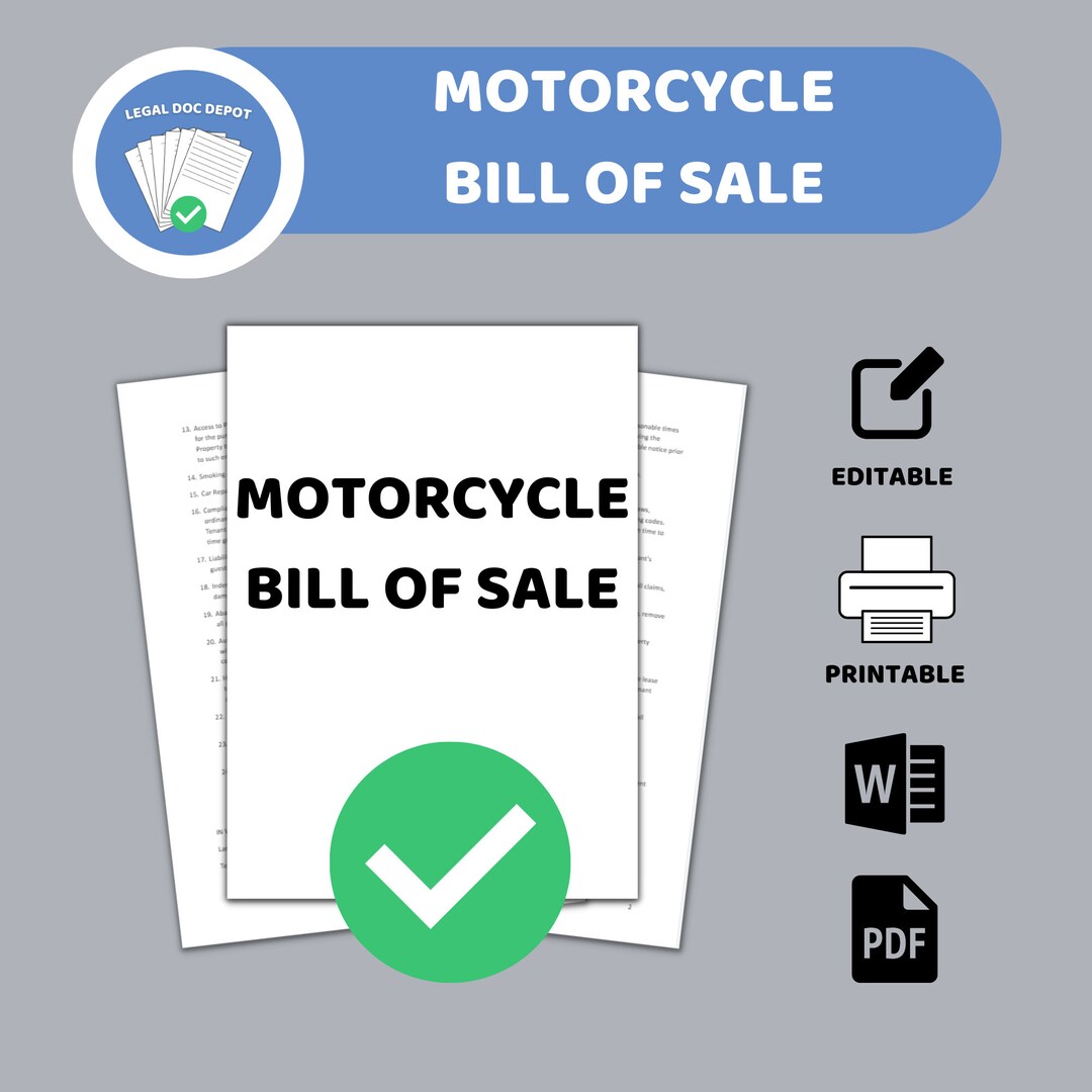 EDITABLE Simple MOTORCYCLE Bill of Sale Template Google Docs Word Pdf