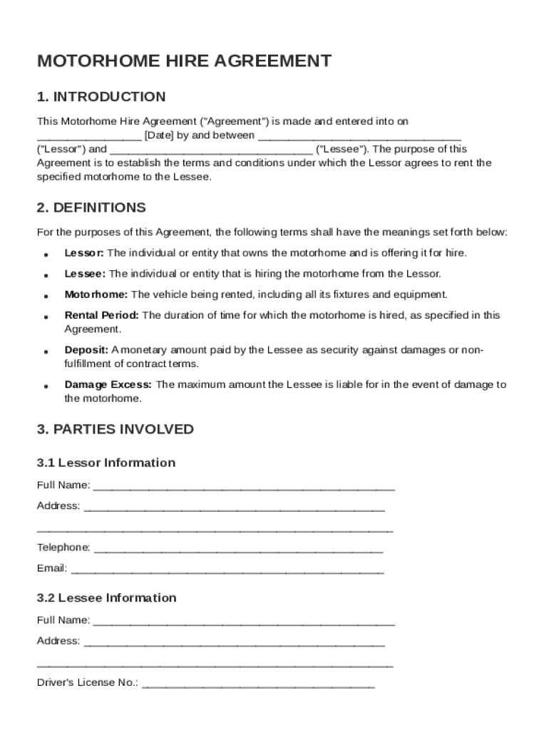 Motorhome Hire Agreement Template: Fill out sign online DocHub