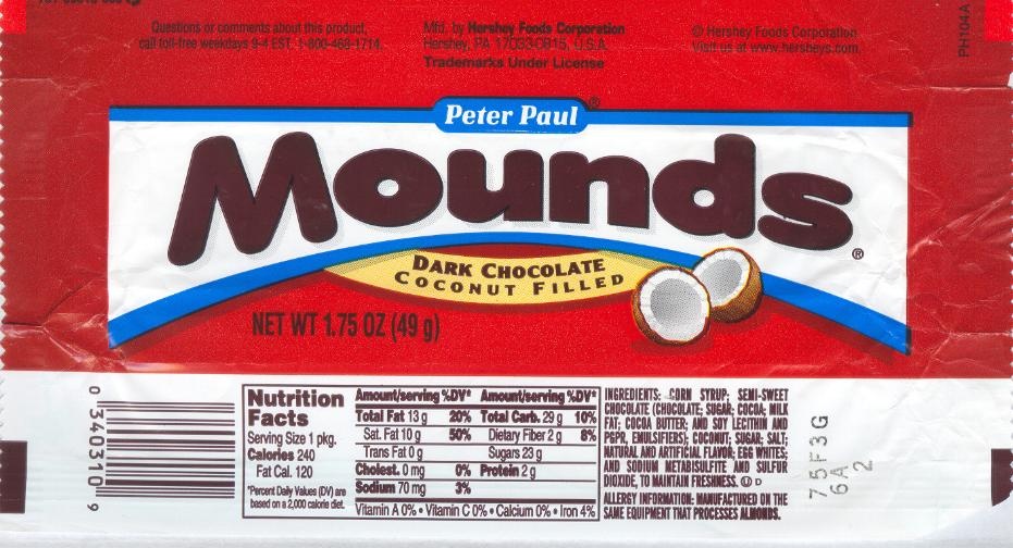 Amazon com : MOUNDS Dark Chocolate and Coconut Candy Bars 1 75 oz (36