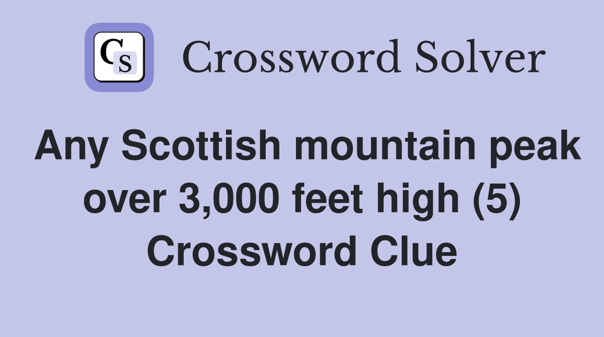 Any Scottish mountain peak over 3 000 feet high (5) Crossword Clue