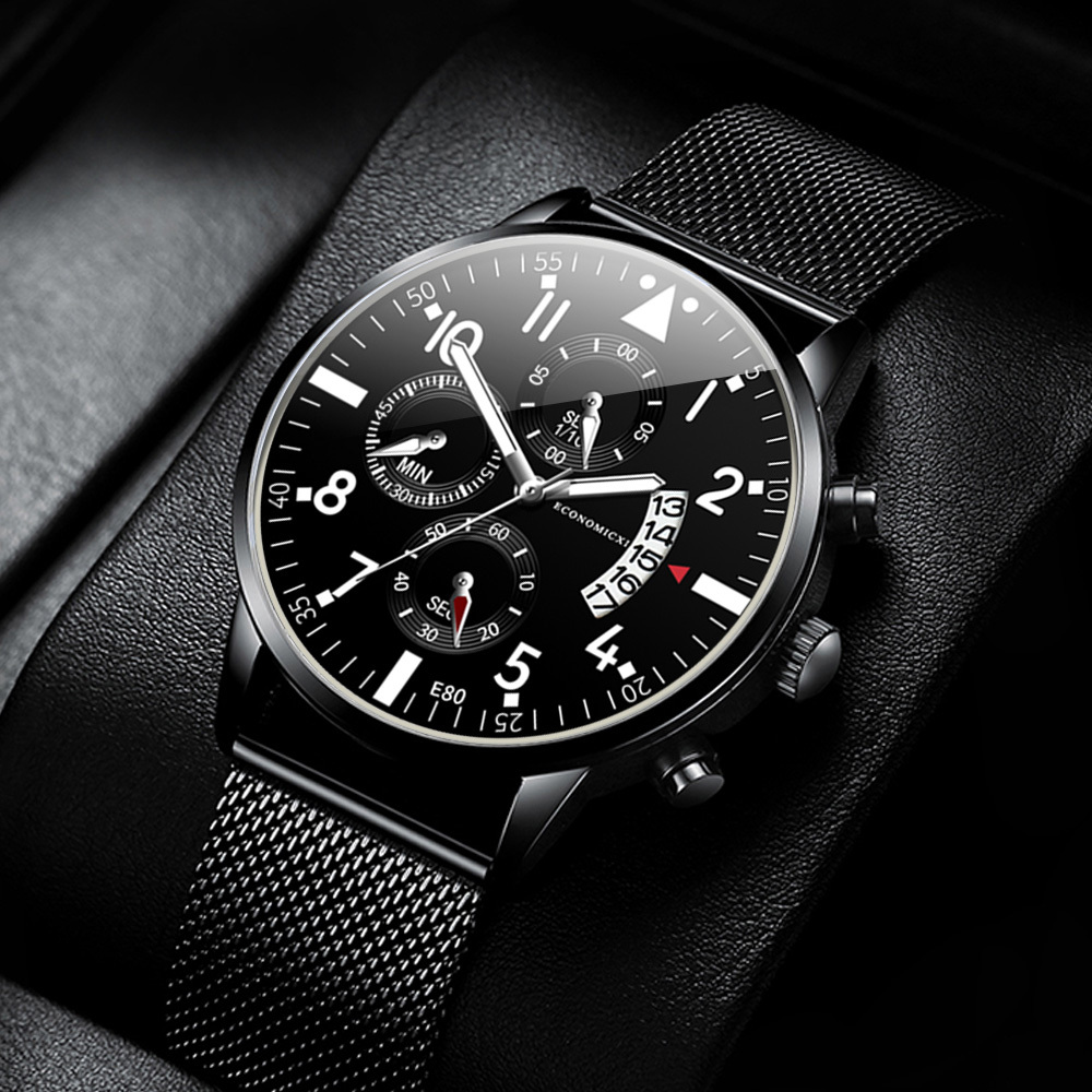 Mens Simple Casual Students Roman Calendar Mesh Band Quartz Watch Don