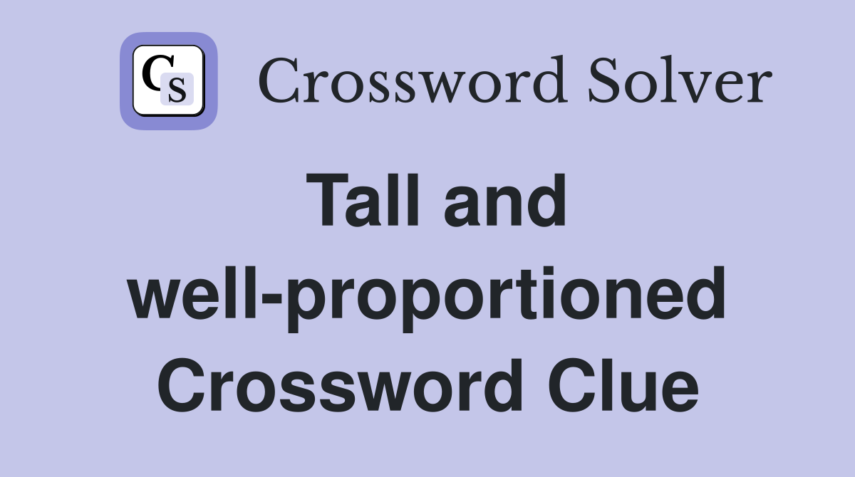 Tall and well proportioned Crossword Clue Answers Crossword Solver