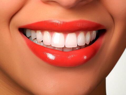 Teeth Whitening with Perfect Smile Beautiful Natural Full Lips and