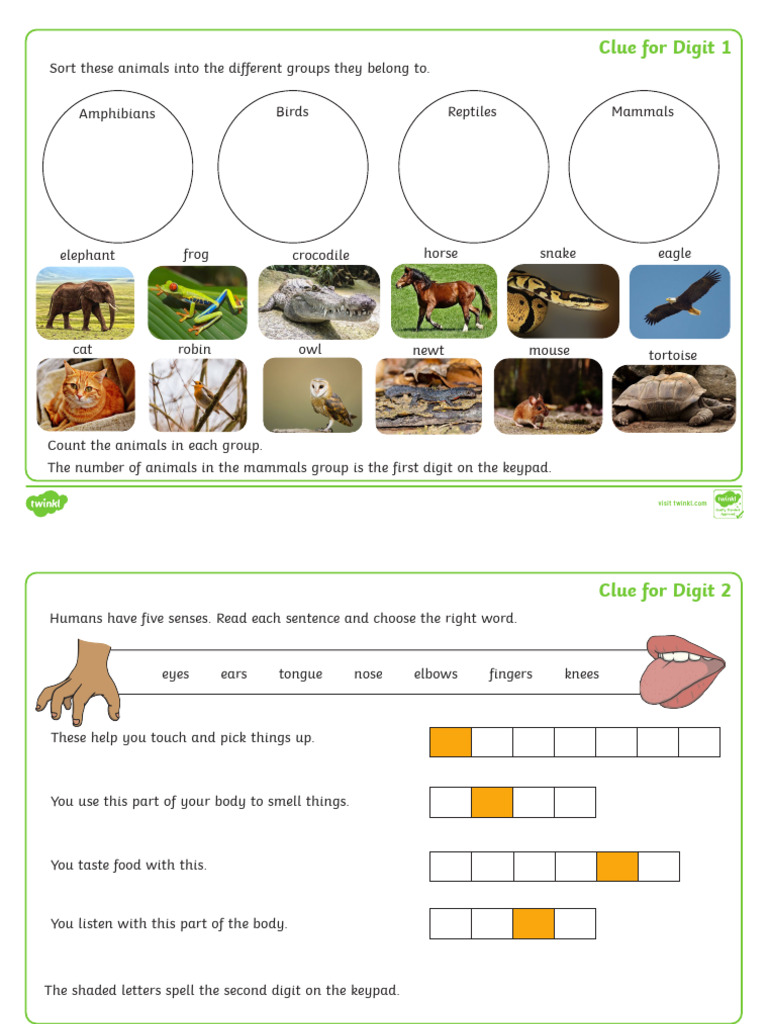 Escape the Zoo Clue Cards PDF Mammals Zoology