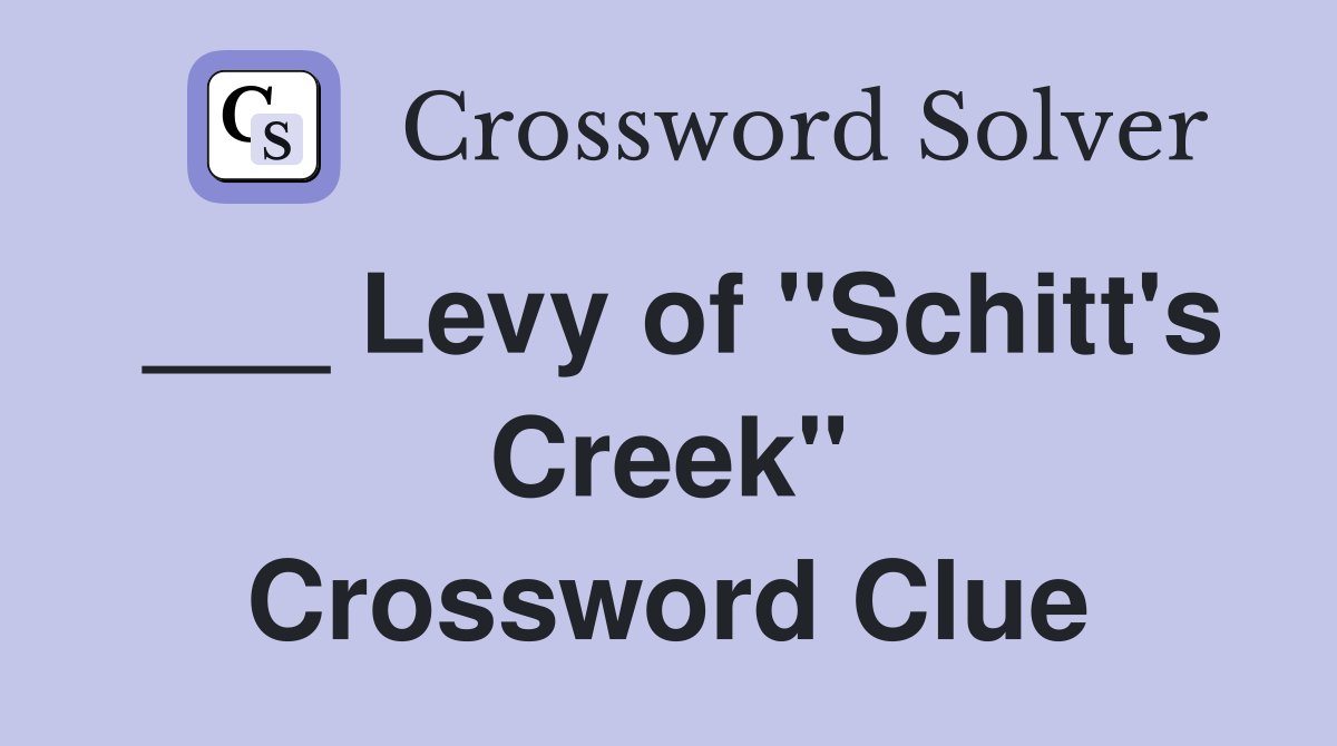 Levy of quot Schitt #39 s Creek quot Crossword Clue Answers Crossword Solver