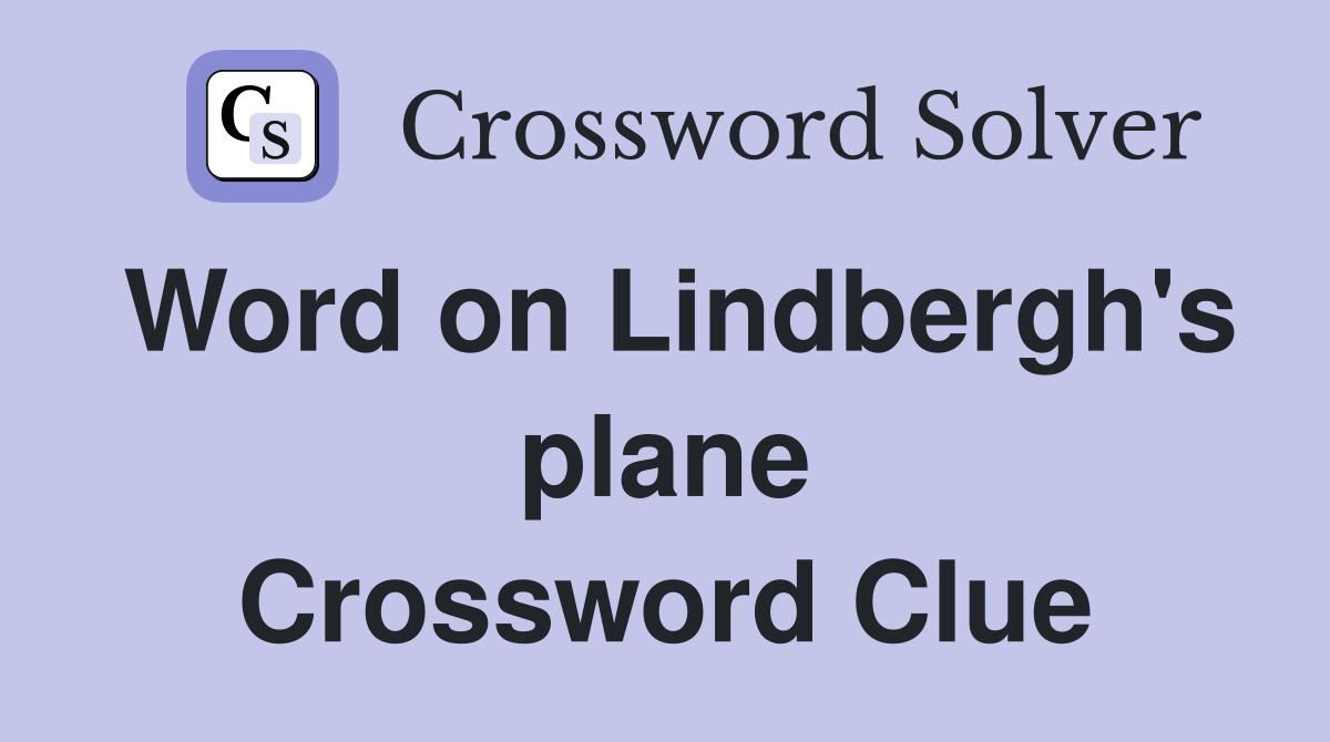 Word on Lindbergh #39 s plane Crossword Clue Answers Crossword Solver