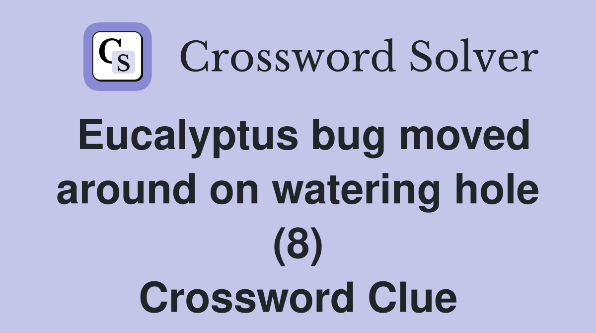 Eucalyptus bug moved around on watering hole (8) Crossword Clue