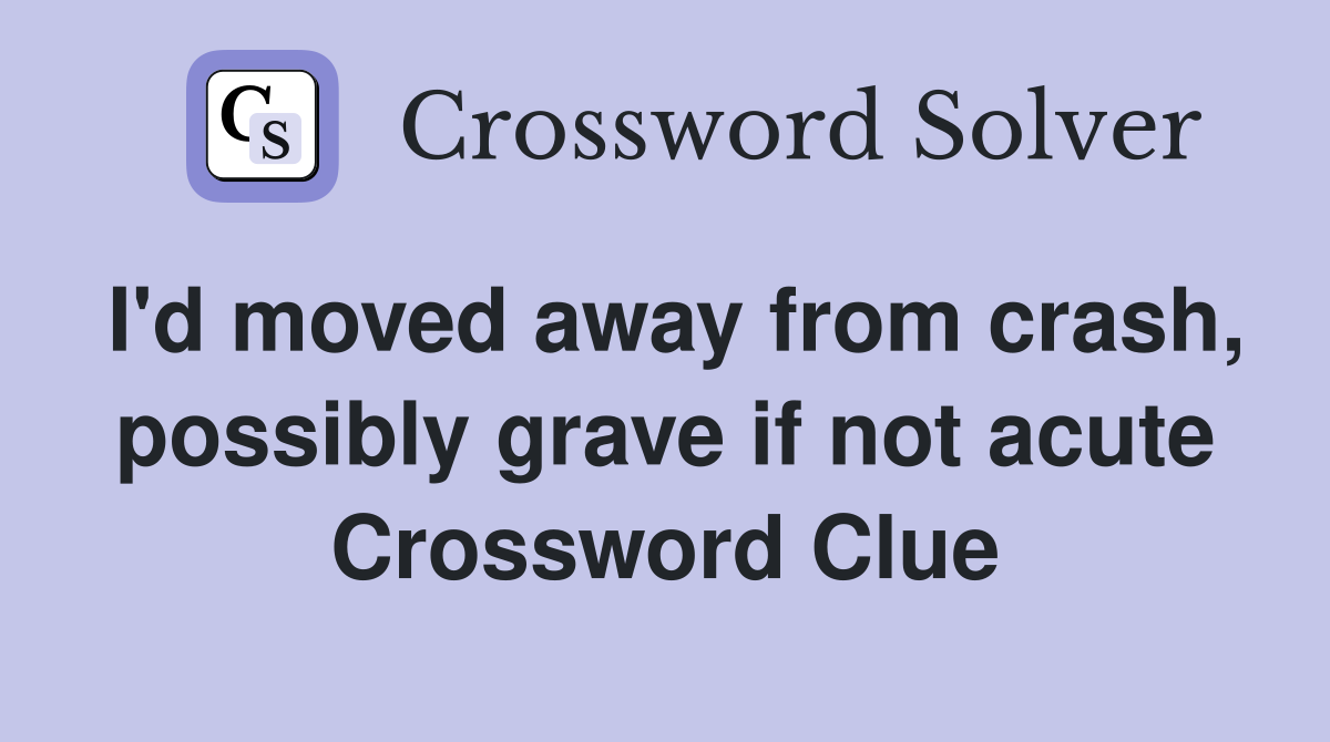 I #39 d moved away from crash possibly grave if not acute Crossword Clue