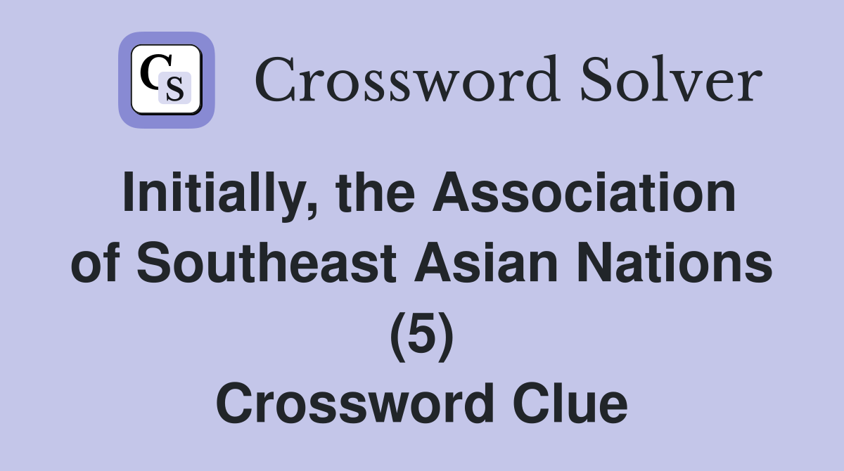 Initially the Association of Southeast Asian Nations (5) Crossword