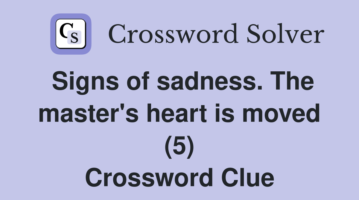 Signs of sadness The master s heart is moved (5) Crossword Clue