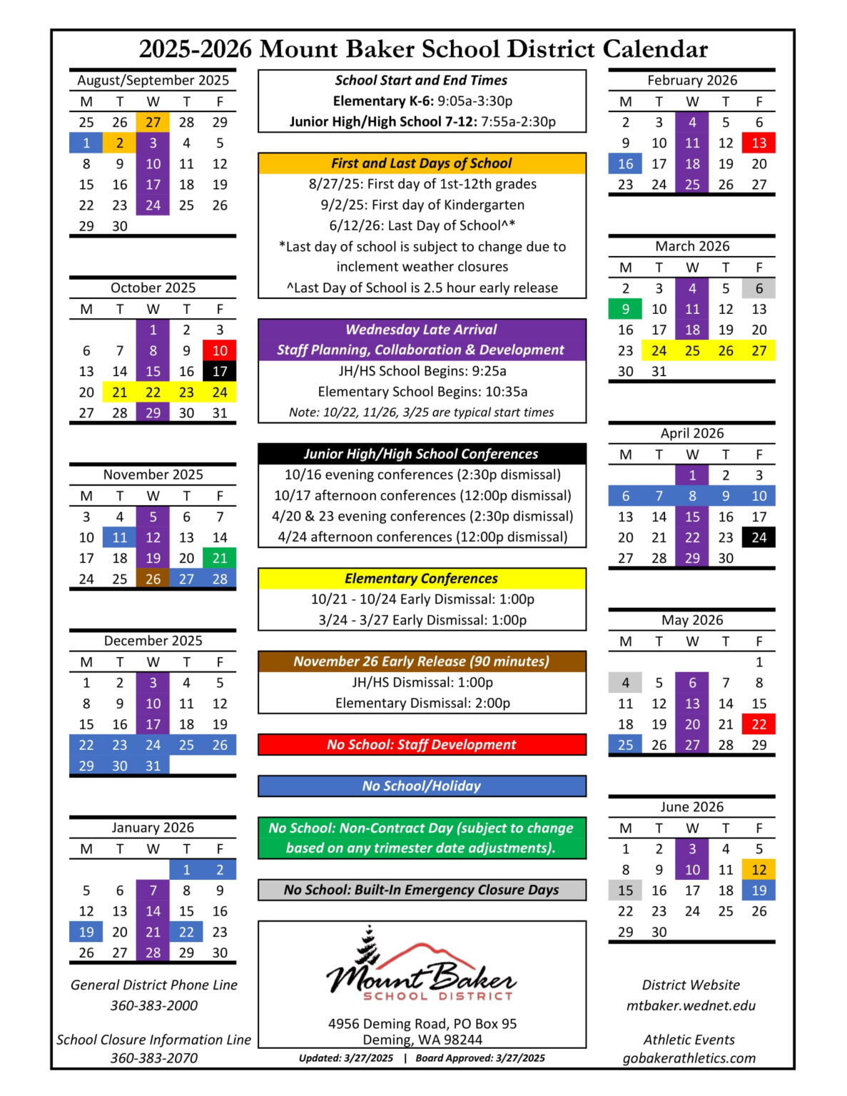 Mount Baker School District Calendar 25 26 Revised PDF EduCounty