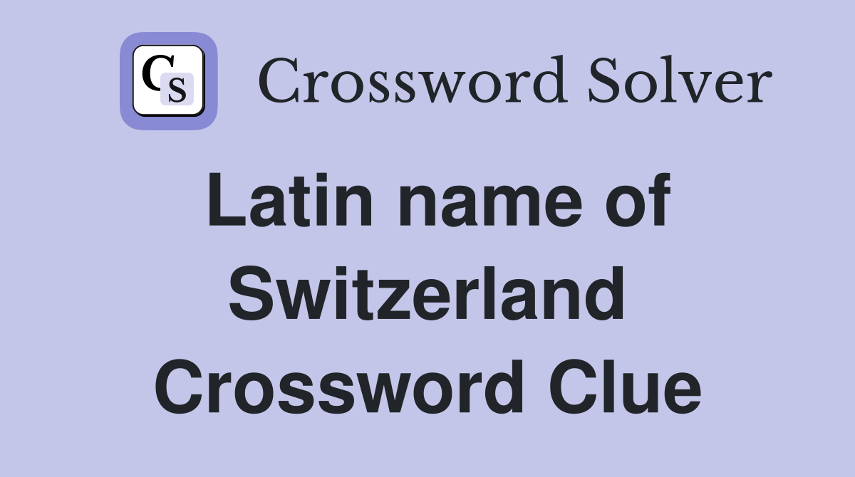 Latin name of Switzerland Crossword Clue Answers Crossword Solver