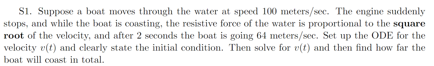 Solved S1 Suppose a boat moves through the water at speed Chegg com