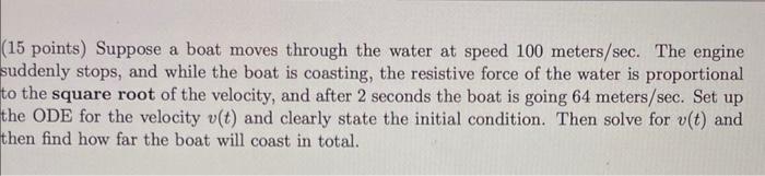 Solved (15 points) Suppose a boat moves through the water at Chegg com