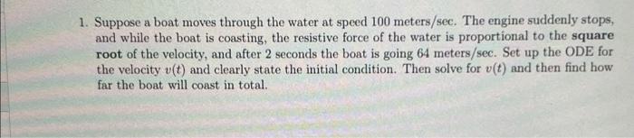 Solved 1 Suppose a boat moves through the water at speed Chegg com