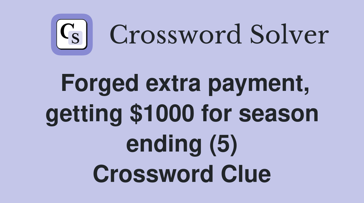 Forged extra payment getting $1000 for season ending (5) Crossword