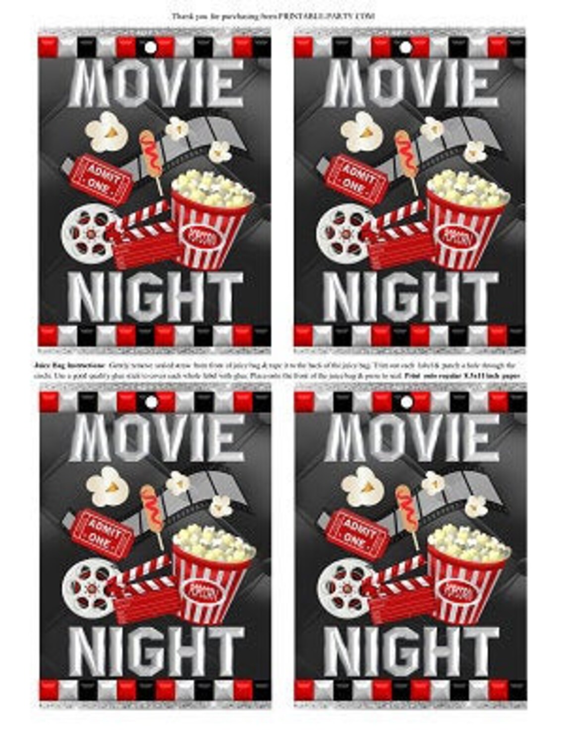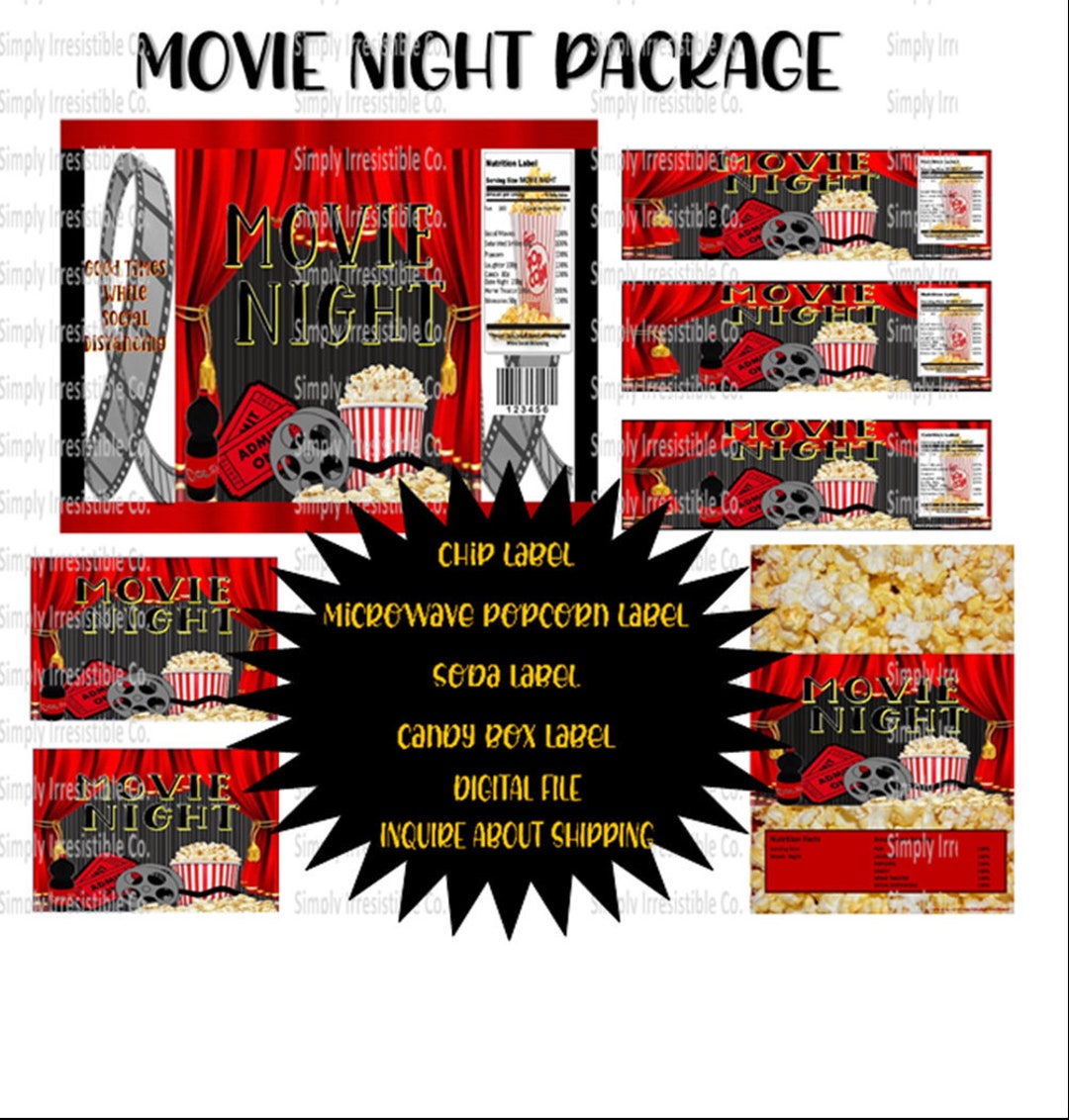 Printable Juice Bag Labels Movie Night Hollywood Birthday Etsy