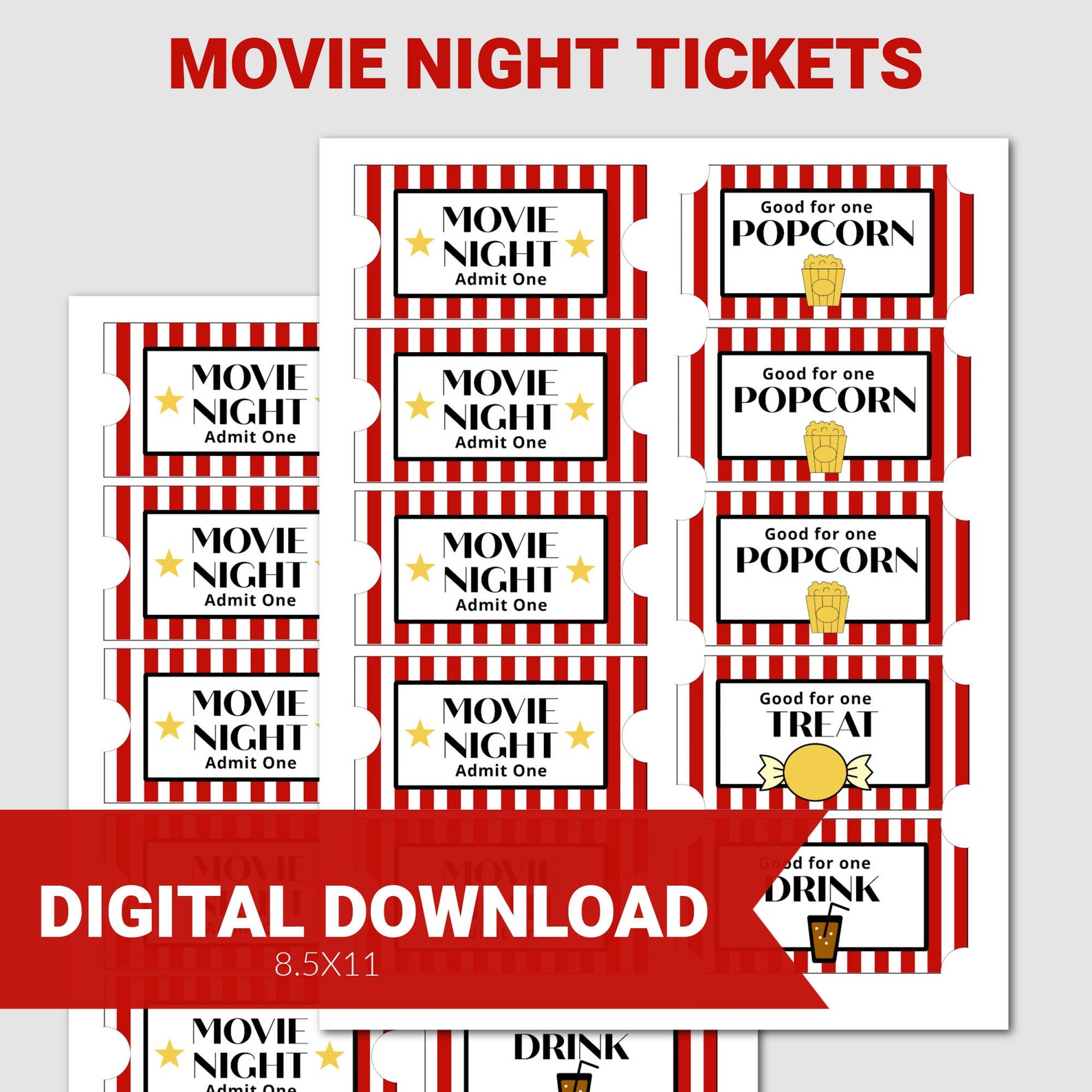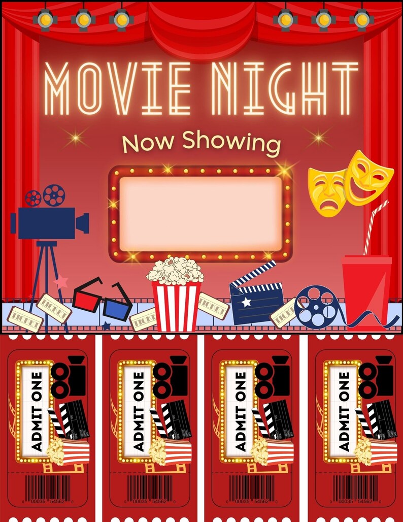 Printable Movie Night Admission Tickets Movie Night Party Etsy