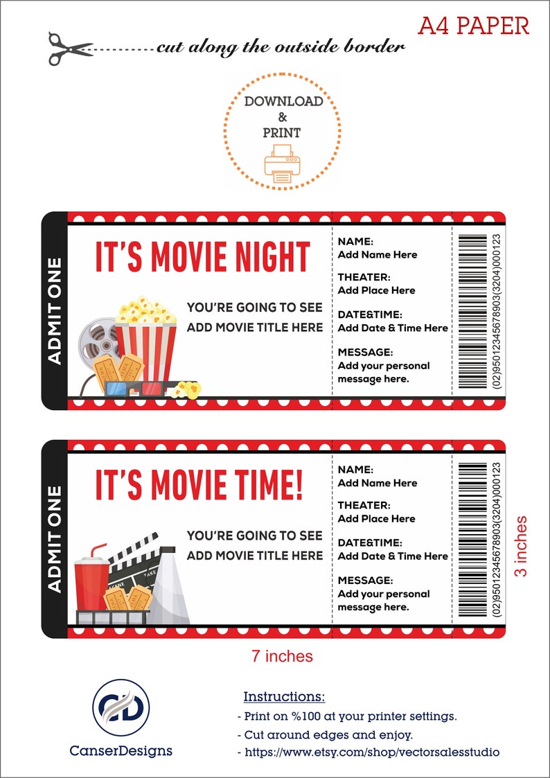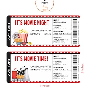 Printable MOVIE Gift Tickets Cinema Themed Gift Reveal Etsy