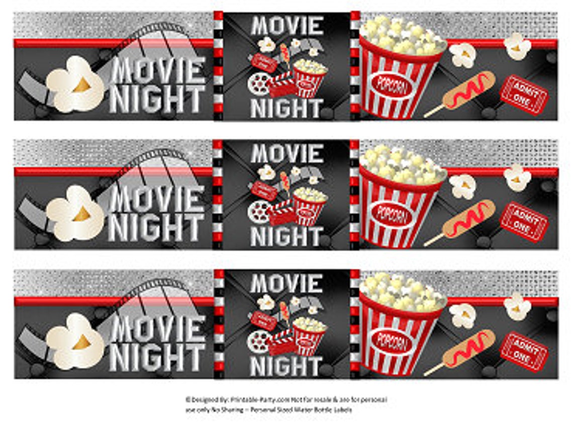 Printable Water Bottle Labels Movie Night Hollywood Red Etsy