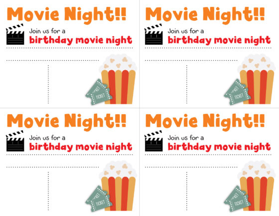 Movie Night Birthday Invitations Free Printable