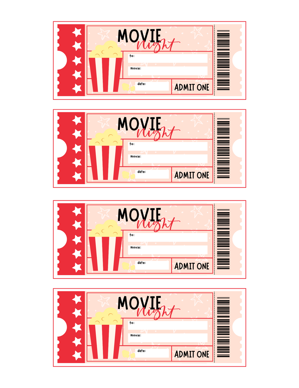 Free printable movie night tickets Download Free printable movie night