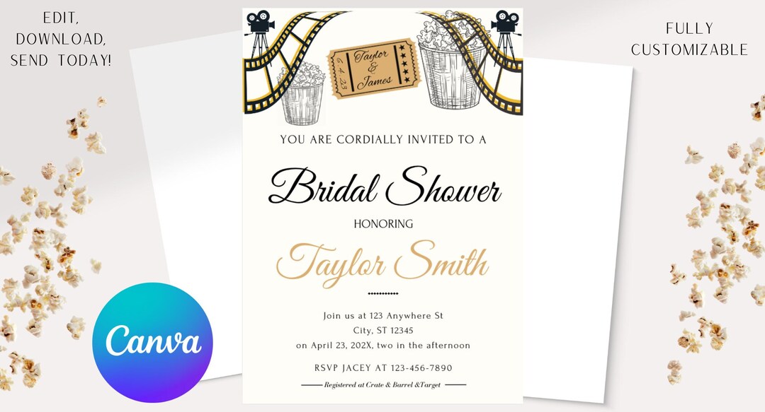 Movie Theme Bridal Invitation Movie Title Screen Bridal Wedding Shower