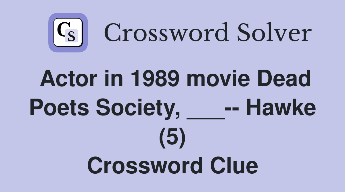Actor in 1989 movie Dead Poets Society Hawke (5) Crossword