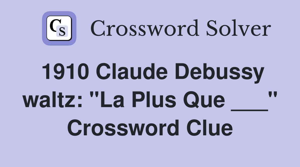 1910 Claude Debussy waltz: quot La Plus Que quot Crossword Clue Answers